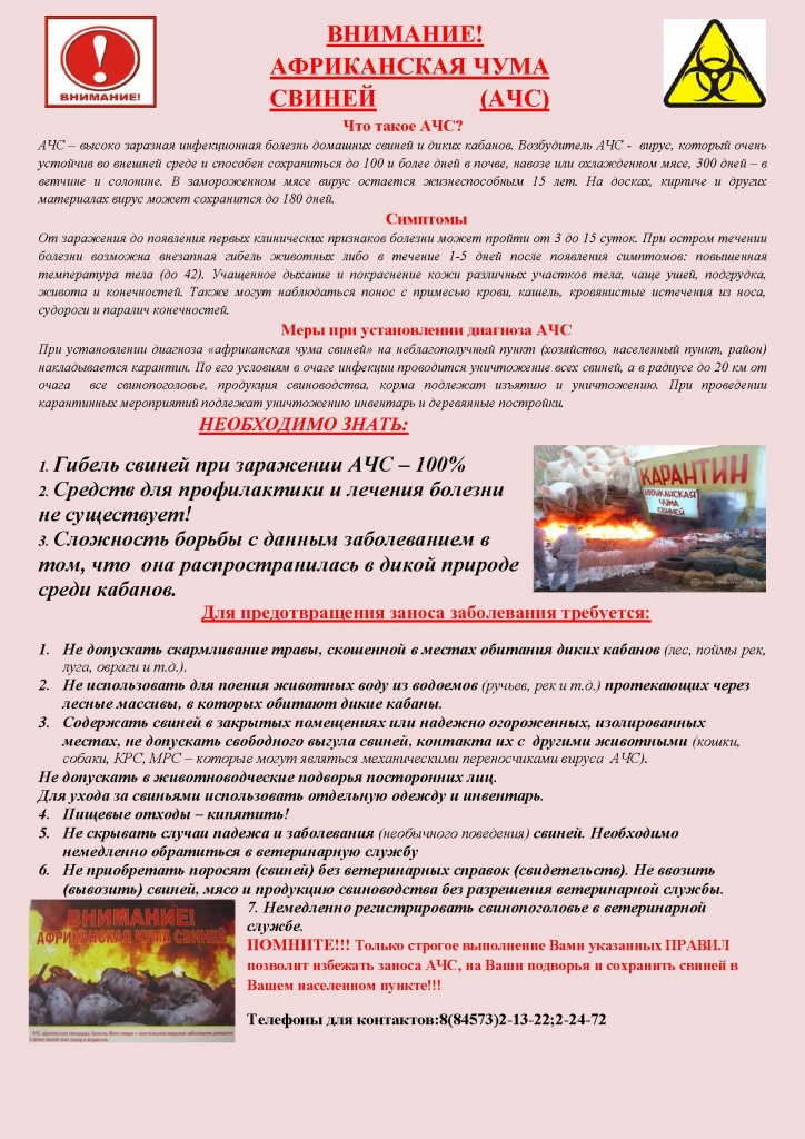 ВНИМАНИЕ! АФРИКАНСКАЯ ЧУМА СВИНЕЙ (АЧС)
