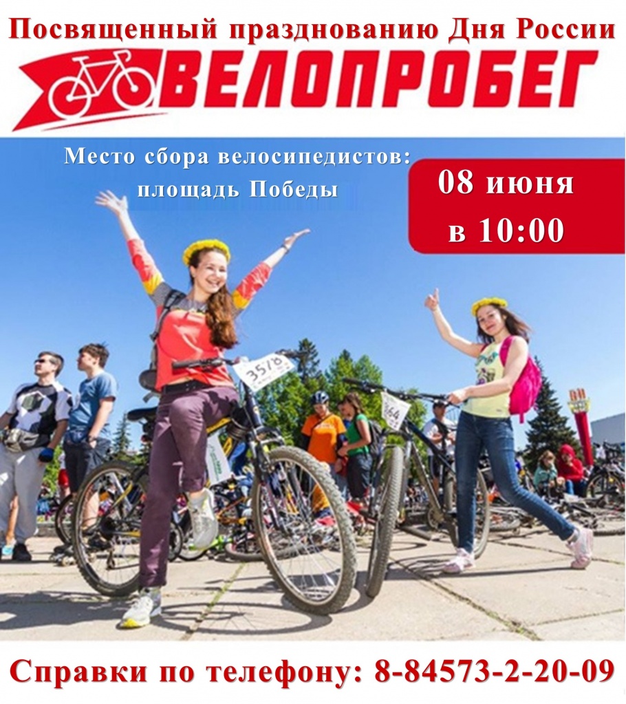 08 июня 2023 года в 10:00, в р.п.Духовницкое состоится массовый велопробег, посвященный празднованию «Дня России».