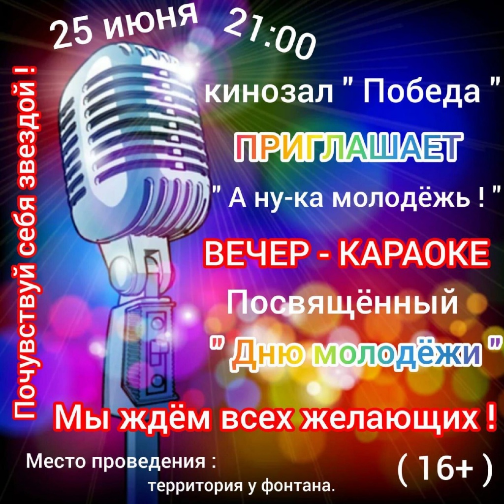 Приглашаем вас посетить мероприятия, посвященные Дню молодёжи, которые состоятся 25 июня на территории кинозала "Победа" (у фонтана)
