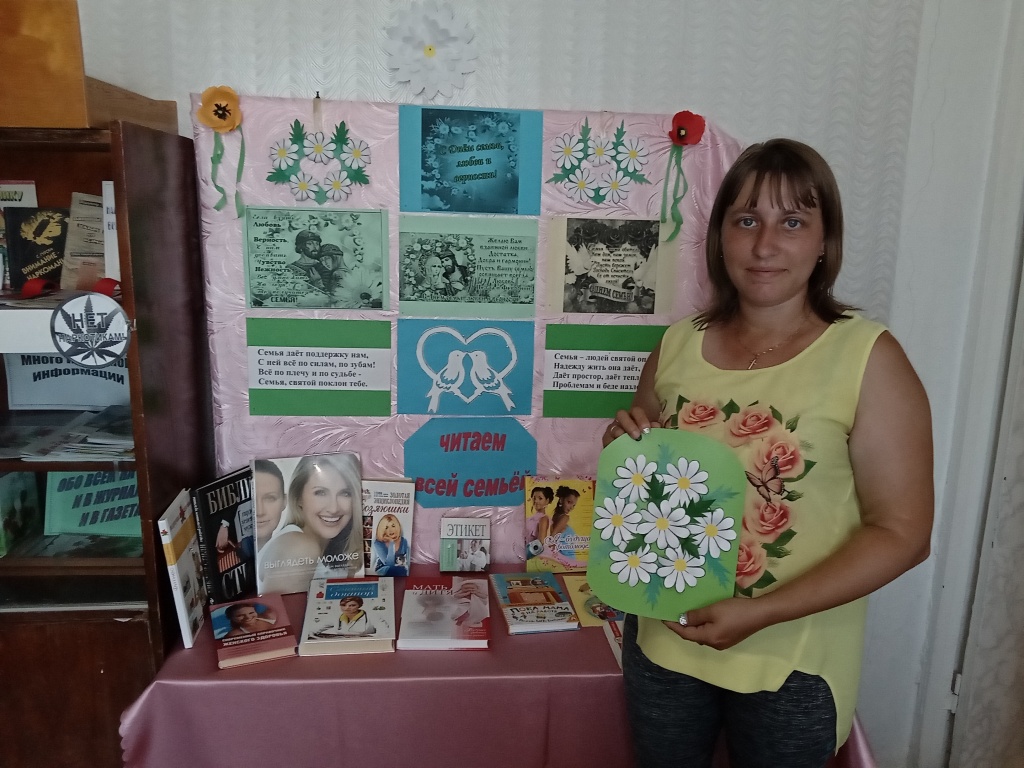 К этому дню библиотекарь подготовила тематическую полку: "Читаем всей семьёй".