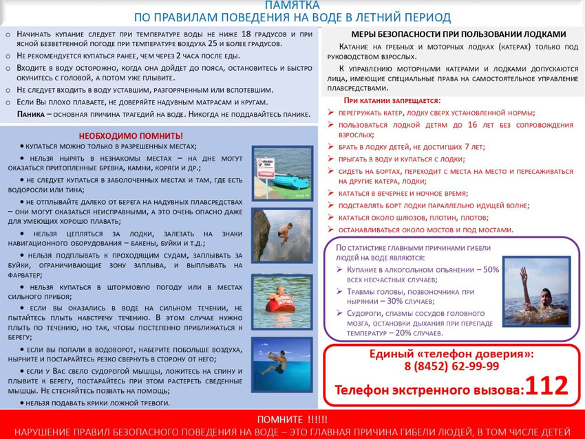 Помните! Нарушение правил безопасного поведения на воде – это главная причина гибели людей, в том числе детей.