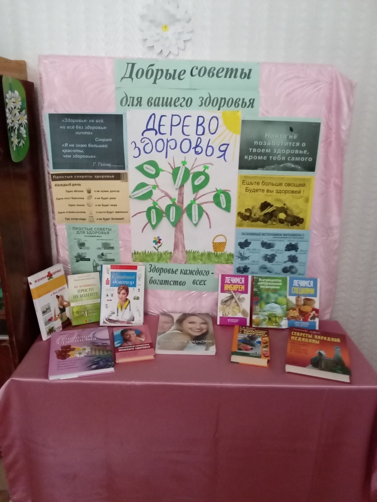 Библиотекарь Полеводинской библиотеки для своих читателей оформила информационный стенд под названием "Добрые советы для вашего здоровья", где читатель может познакомиться с информацией о здоровом образе жизни.