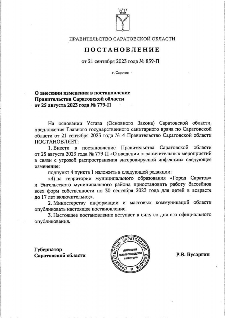 Подписано постановление Правительства области о смягчении ограничительных мероприятий в связи с распространением энтеровирусной инфекции.