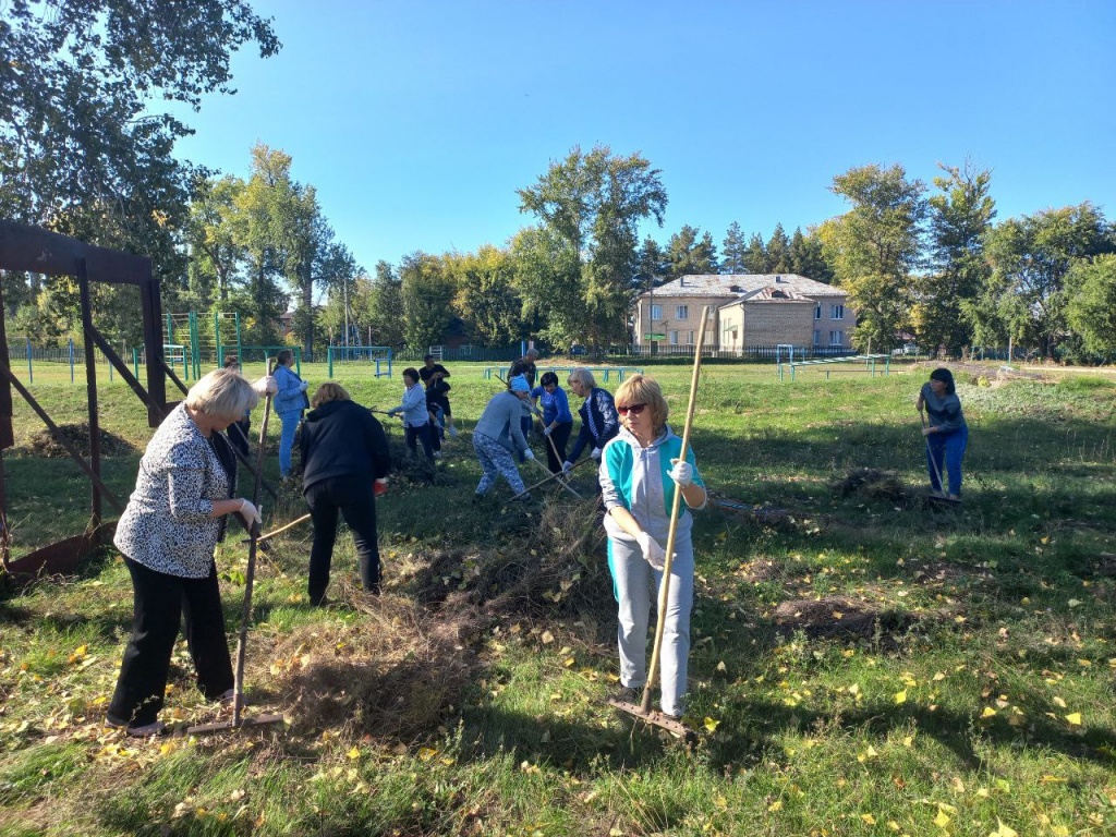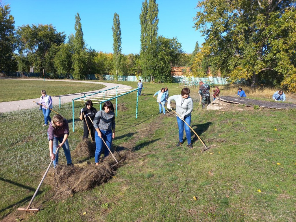 25 сентября вооружившись необходимым инвентарем, педагоги с удовольствием привели в порядок школьную территорию: собрали мусор, сгребли листву и траву.
