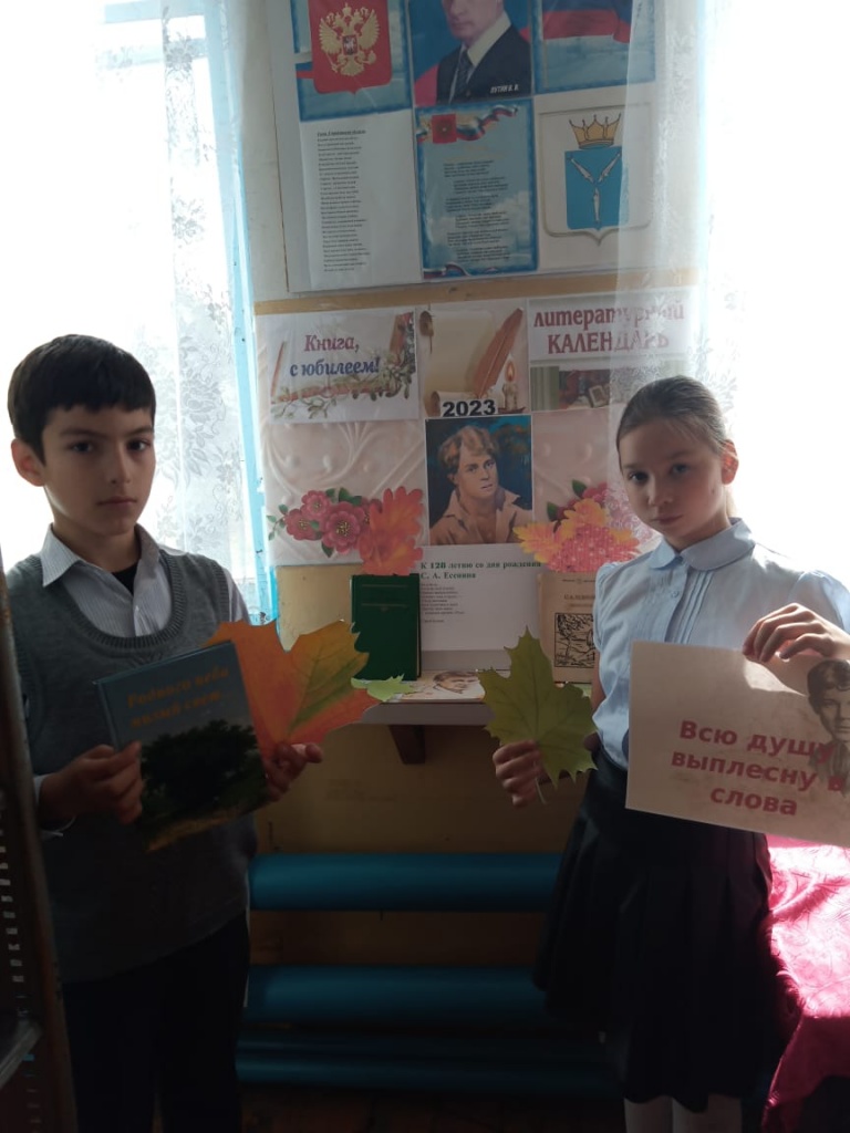 К 128-летию со дня рождения Сергея Есенина (1895-1925) в Брыковской сельской библиотеке, для учащихся 4 класса школы, была проведена выставка-портрет «Всю душу выплесну в слова».