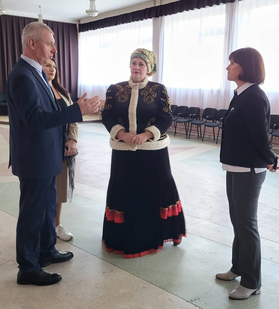 Далее визит продолжился посещением районного Дома культуры, в котором располагаются Центральная библиотека, Детская школа искусств и Дом культуры. Министр культуры области пообщалась со всеми коллективами учреждений культуры и пожелала всем творческих успехов, благополучия и процветания.