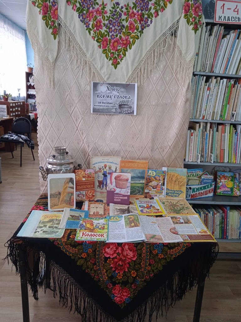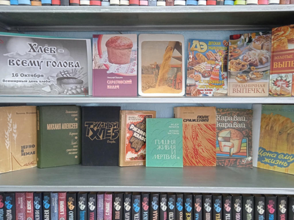 В библиотеке для взрослых читателей оформлена тематическая полка «Хлеб - всему голова», где представлены произведения о хлебе и труде хлеборобов таких замечательных авторов как Н.Палькин, М.Алексеев,Ф.Абрамов и другие.