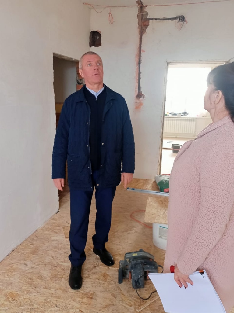 Во время визита был произведен осмотр помещений, в которых ведутся ремонтные работы, оценено качество проделанных работ, обсуждены сроки их завершения.