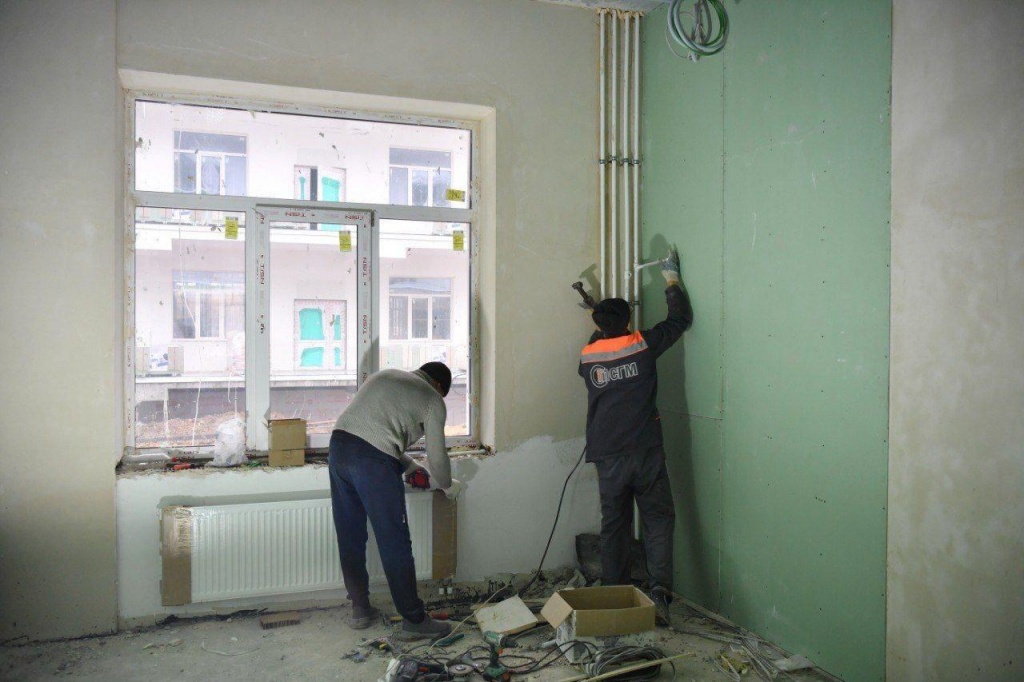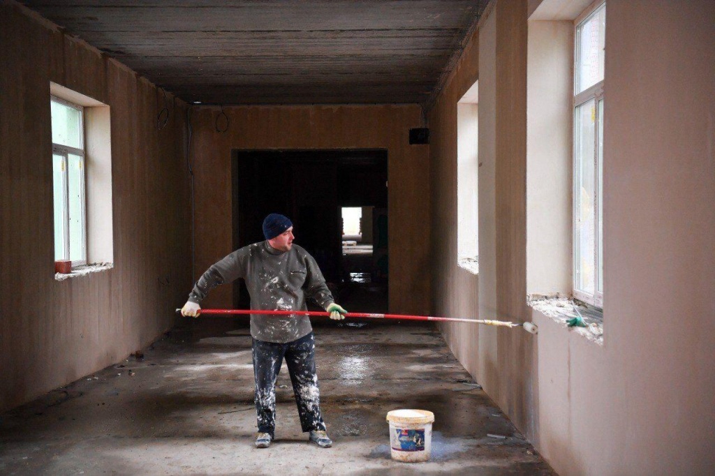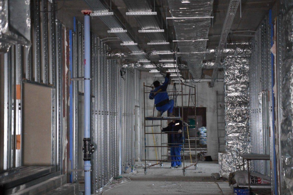 На данный момент на объекте трудятся более 300 человек, свыше 25 единиц техники. Продолжается утепление и окраска фасада здания, внутренняя отделка в 7 корпусах. Ведутся электромонтажные и сантехнические работы, устанавливаются система вентиляции, перегородки. Строятся помещения прачечной, гаража и ещё один корпус учреждения, устанавливаются ограждения, пожарные лестницы, ведутся подготовительные работы для пуска отопления на объект, прокладка хозяйственно-бытовой канализации.