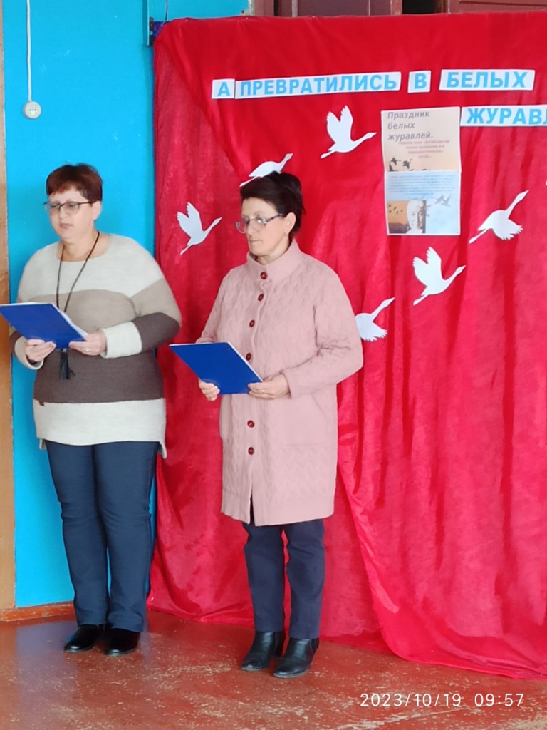 В преддверии праздника, 20 октября, библиотекарем Брыковской филиала с участием методиста клуба, была проведена литературно-музыкальная гостиная «А превратились в белых журавлей». На мероприятие были приглашены учащиеся школы, жители и гости села.