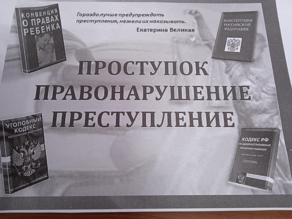 В Дмитриевском филиале библиотеки совместно со школой в рамках Акции "Единый день профилактики безнадзорности и правонарушений несовершеннолетних"(профилактика правонарушений и преступлений, связанных с причинением телесных повреждений) провели для учащихся час права "Проступки. Правонарушения. Преступления".