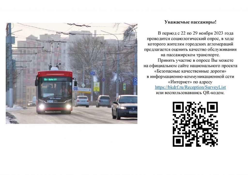 В период с 22 по 29 ноября 2023 года проводится социологический опрос, в ходе которого жителям городских агломераций предлагается оценить качество обслуживания на пассажирском транспорте.