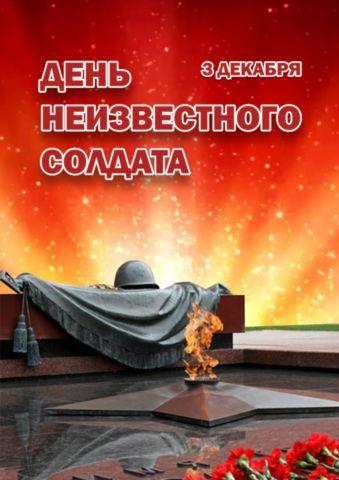 3 декабря мы отмечаем торжественную и скорбную дату. В этот день мы чтим память тех, кто ценой своей жизни выполнил свой долг перед Родиной, вспоминаем обо всех безвестно павших на полях сражений. Все они - герои своей страны, России, и живы в памяти людской.