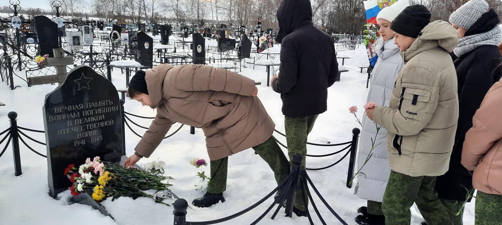 Сегодня в нашем поселке возле могилы Неизвестного солдата, 8А кадетский класс, заведующая школьным музеем и работники центральной районной библиотеки провели памятное мероприятие «Имя твоё неизвестно, подвиг твой бессмертен!», посвященное Дню Неизвестного солдата, который отмечается ежегодно 3 декабря.