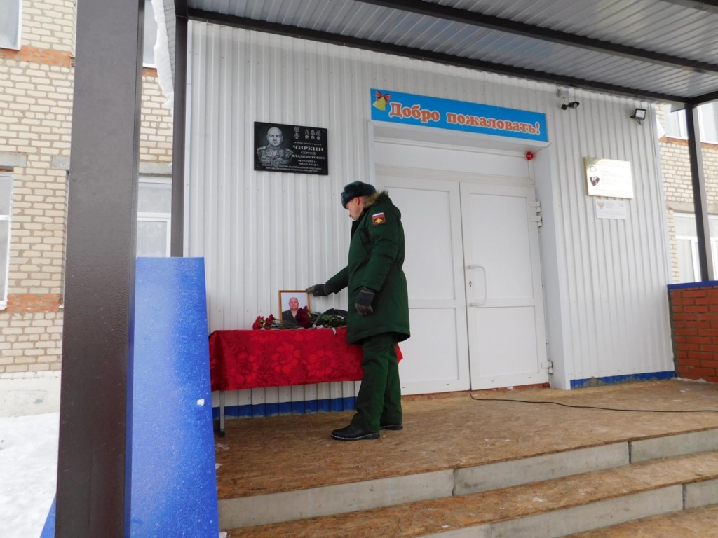 Сегодня в школе села Новозахаркино открыли мемориальную доску в память о командире батальона 94 - ого полка Сергее Владимировиче Чиркине.