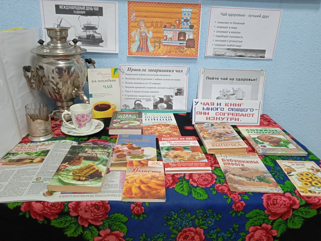 В Дмитриевской библиотеке оформлена книжная выставка "Чай здоровью - лучший друг", где представлена литература о истории появления чая, традициях чаепития, книги кулинарных рецептов вкусной выпечки, полезные советы по завариванию чая и даже похудения с помощью этого замечательного напитка.