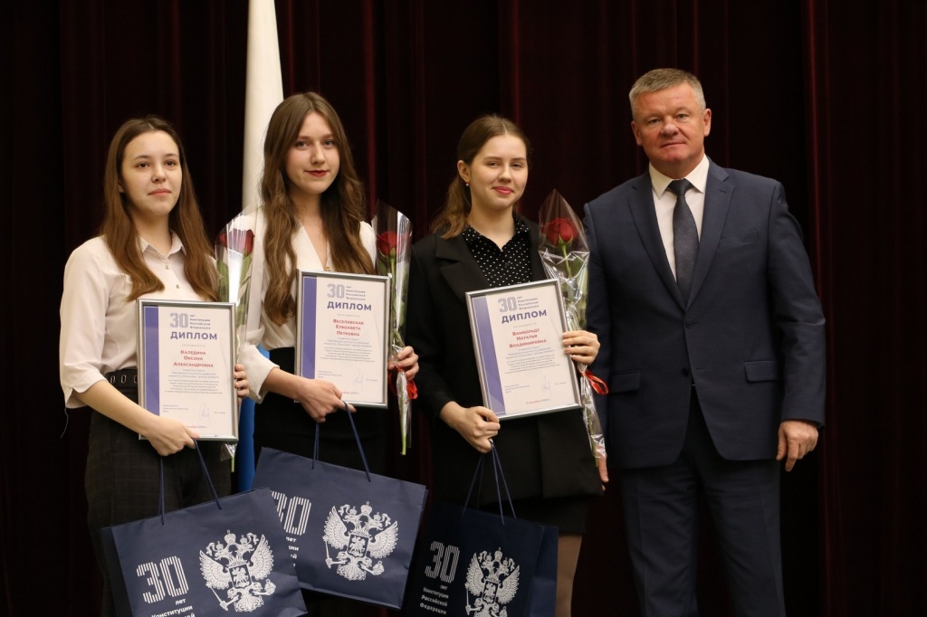 Студенты Поволжского института управления имени П.А. Столыпина РАНХиГС Наталья Вамбольдт, Елизавета Веселовская и Оксана Каледина под научным руководством доцента Вячеслава Халиулина и при активной поддержке куратора группы, преподавателя Ирины Садовничей заняли третье место во Всероссийском конкурсе законодательных проектов среди студентов, магистрантов и аспирантов, посвященном 30-летию Конституции Российской Федерации.