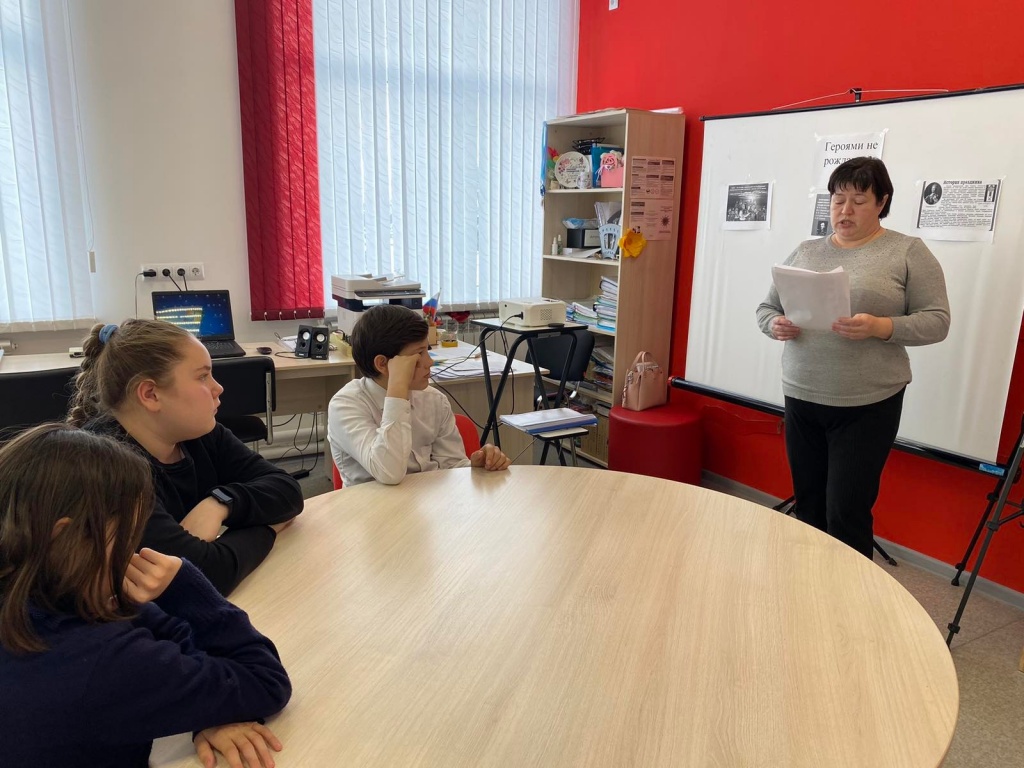 Библиотекарь Горяйновского филиала провела беседу "Героями не рождаются" с учащимися 5-6 классов.