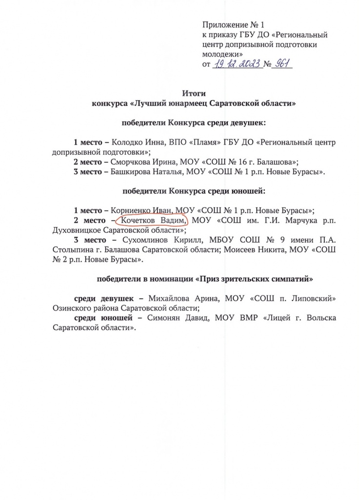В число данных победителей вошёл и Кочетков Вадим, занявший второе почетное место среди юношей со всей Саратовской области.