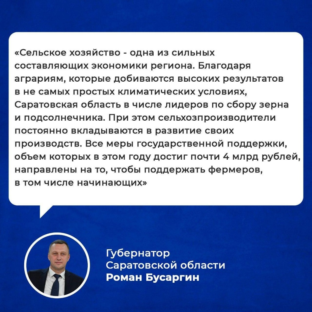 Объем господдержки составил 3,995 млрд рублей. Средства направлены на развитие растениеводства, животноводства, мелиорации, реализацию национальных проектов «Экспорт продукции АПК» и «Малое и среднее предпринимательство и поддержка предпринимательской инициативы», инициированных Президентом Владимиром Путиным.