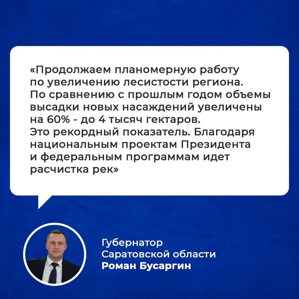 На территории области площадь лесов увеличена на 4 тыс гектаров, что на 60% больше, чем в прошлом году. Выращено 7,8 млн штук стандартных сеянцев.