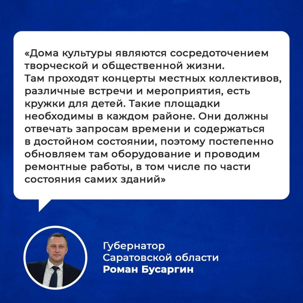 - капитально отремонтированы 12 сельских ДК, здание Балашовского краеведческого музея, завершена реконструкция ДШИ № 23 имени В.В.Ковалева г. Саратова;