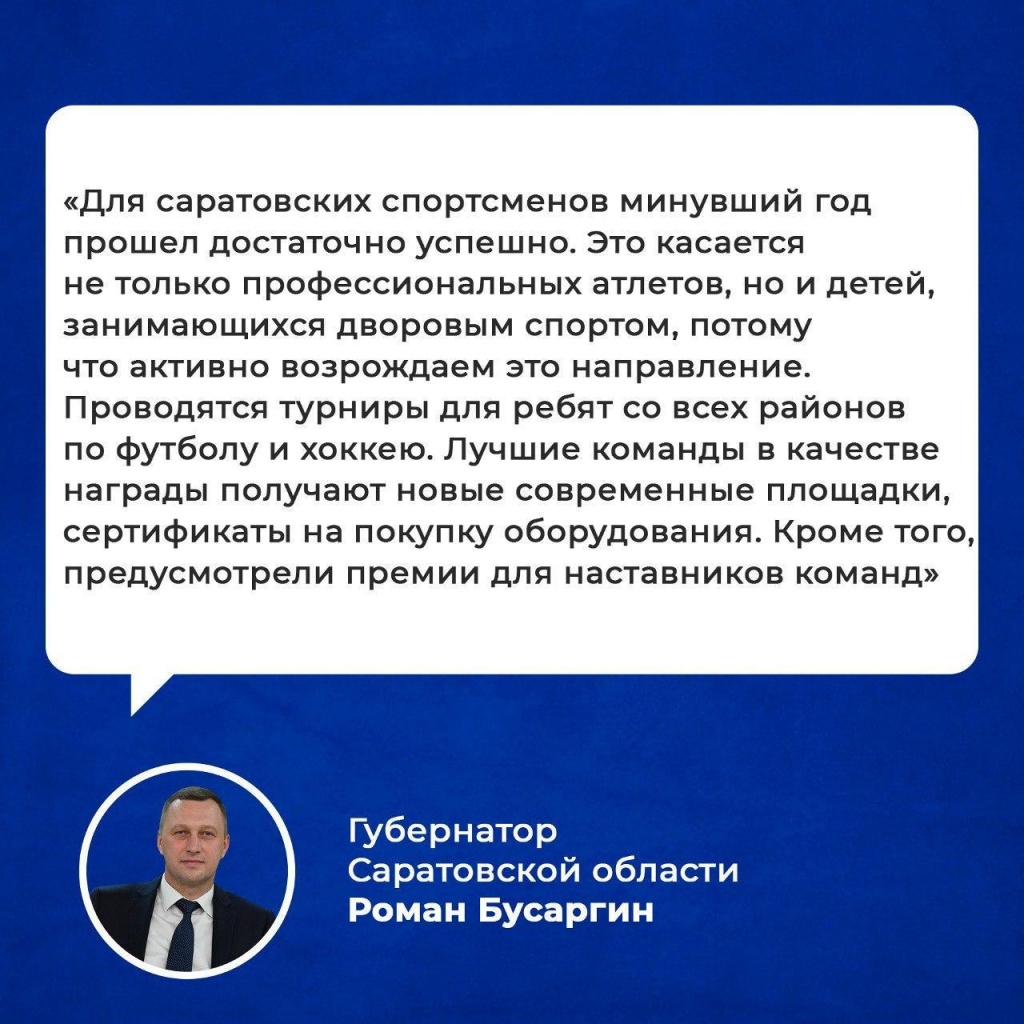 По итогам областного турнира по футболу среди дворовых команд на Кубок Губернатора Саратовской области 2022 года команды-победители получили в подарок многофункциональные спортивные площадки для тренировок. Они построены в Александрово-Гайском, Пугачевском, Энгельсском, Ртищевском, Озинском районах и Саратове.