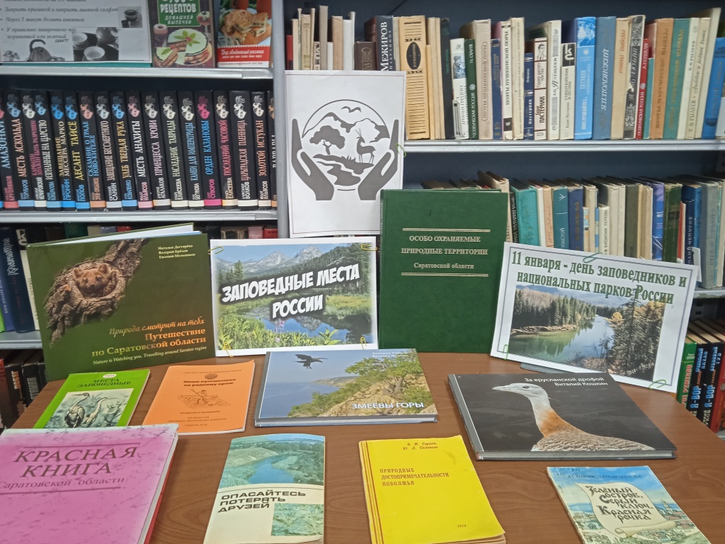 В Дмитриевской библиотеке оформлена книжная выставка "Заповедные места России", где представлена краеведческая литература о особо охраняемых природных территориях Саратовского края.