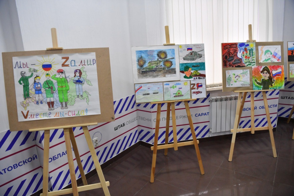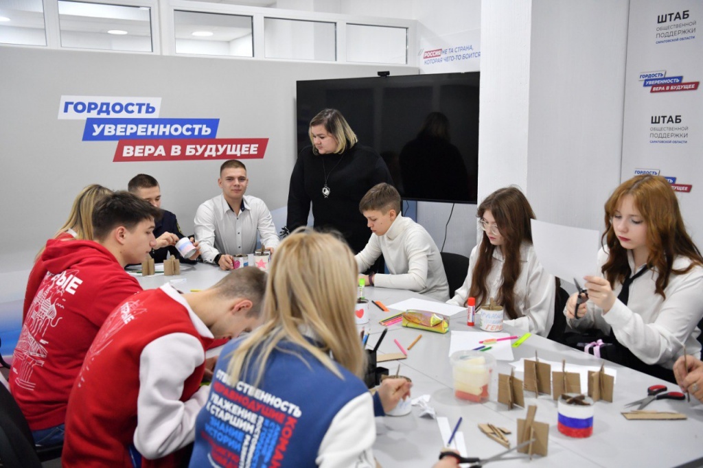 В частности, сегодня там организован мастер-класс по изготовлению окопных свечей, а в фойе открылась выставка детских рисунков, посвященных теме СВО, представлены варежки, шапки и шарфы, которые саратовские мастерицы вяжут бойцам на фронт.