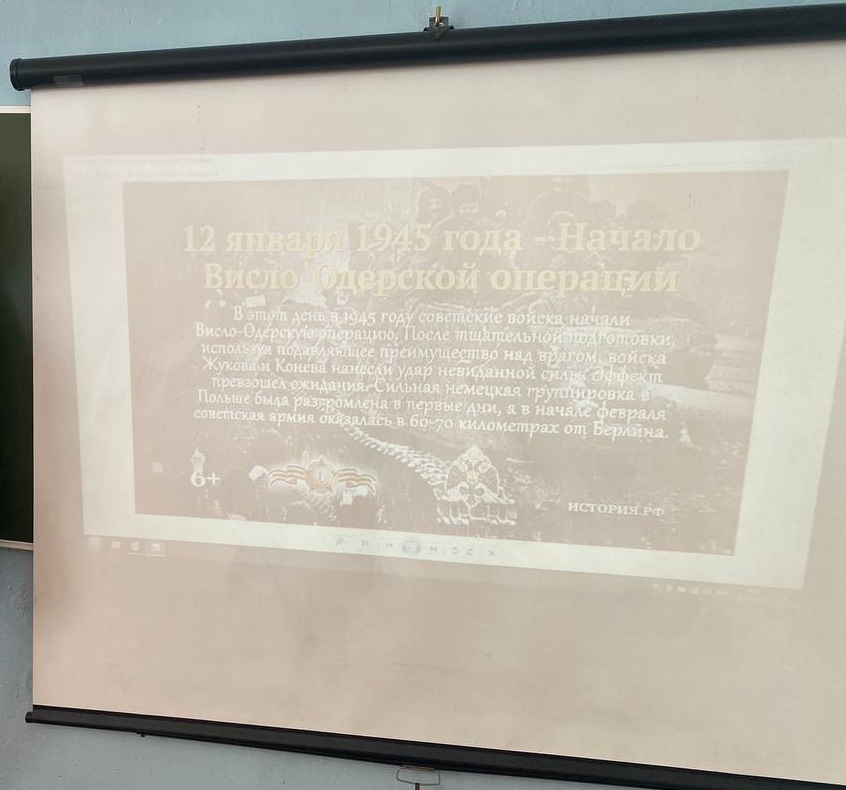 В ходе урока ученики узнали, что Висло-Одерская стратегическая наступательная операция — стратегическая наступательная операция советских войск на правом фланге советско-германского фронта в 1945 году началась 12 января 1945 года, завершилась 3 февраля. Проводилась силами 1-го Белорусского (командующий — маршал Советского Союза Георгий Жуков) и 1-го Украинского фронтов (маршал Советского Союза Иван Конев).
