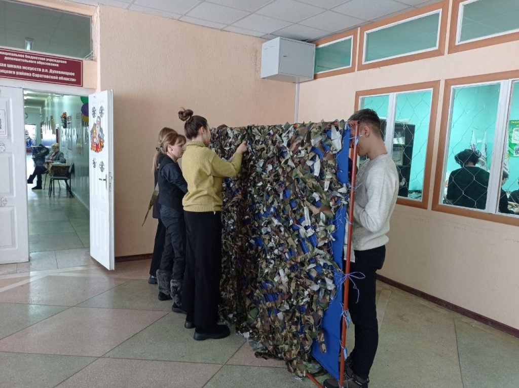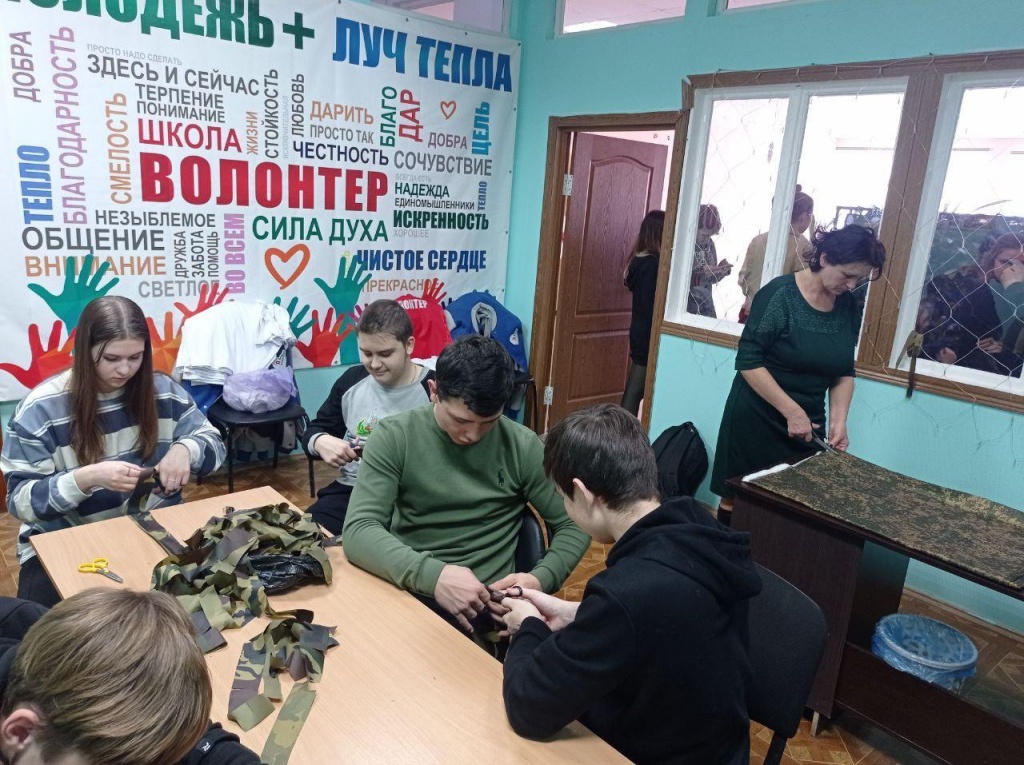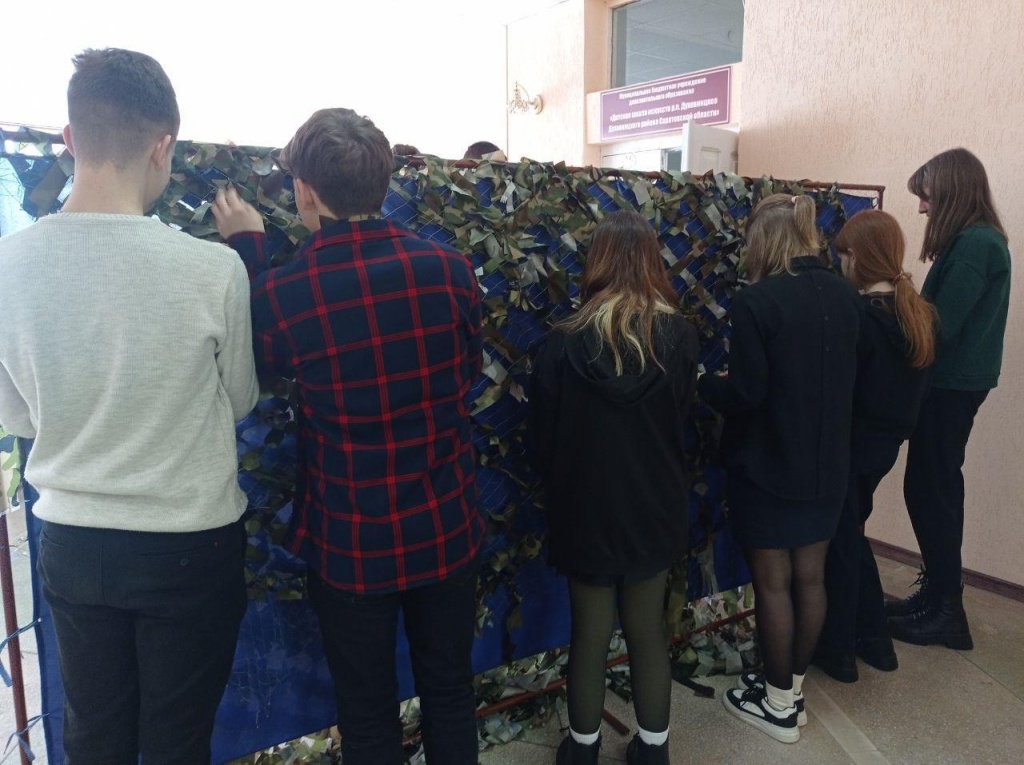 Ученики 10 класса со своим классным руководителем Валентиной Сергеевной Марковой активно приняли участие по изготовление сети!
