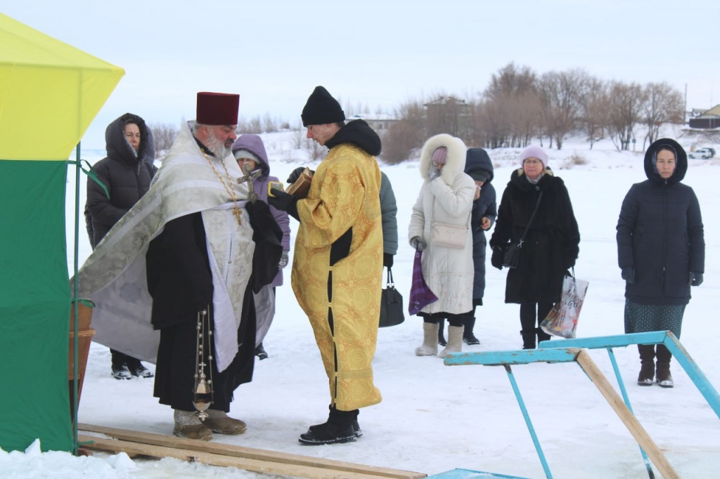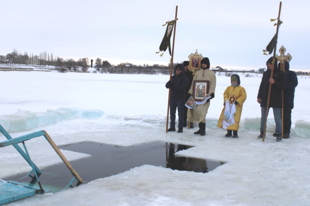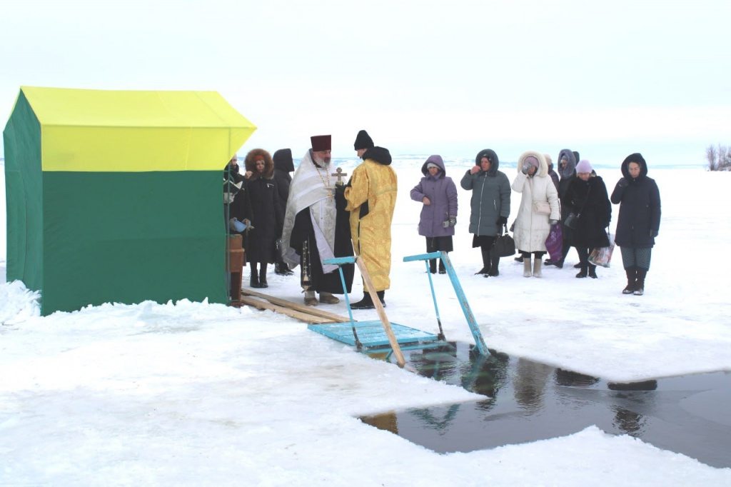 Десятки людей в районном центре прошли Крестным ходом от церкви Пророка Божия Илии до Волги, где состоялись праздничное богослужение и освящение воды. Обряд провел настоятель храма отец Евгений. Здесь уже была вырублена купель в виде креста, установлена палатка для переодевания. Духовничане и гости набирали крещенскую воду впрок, так как все наслышаны о её великой целебной силе.