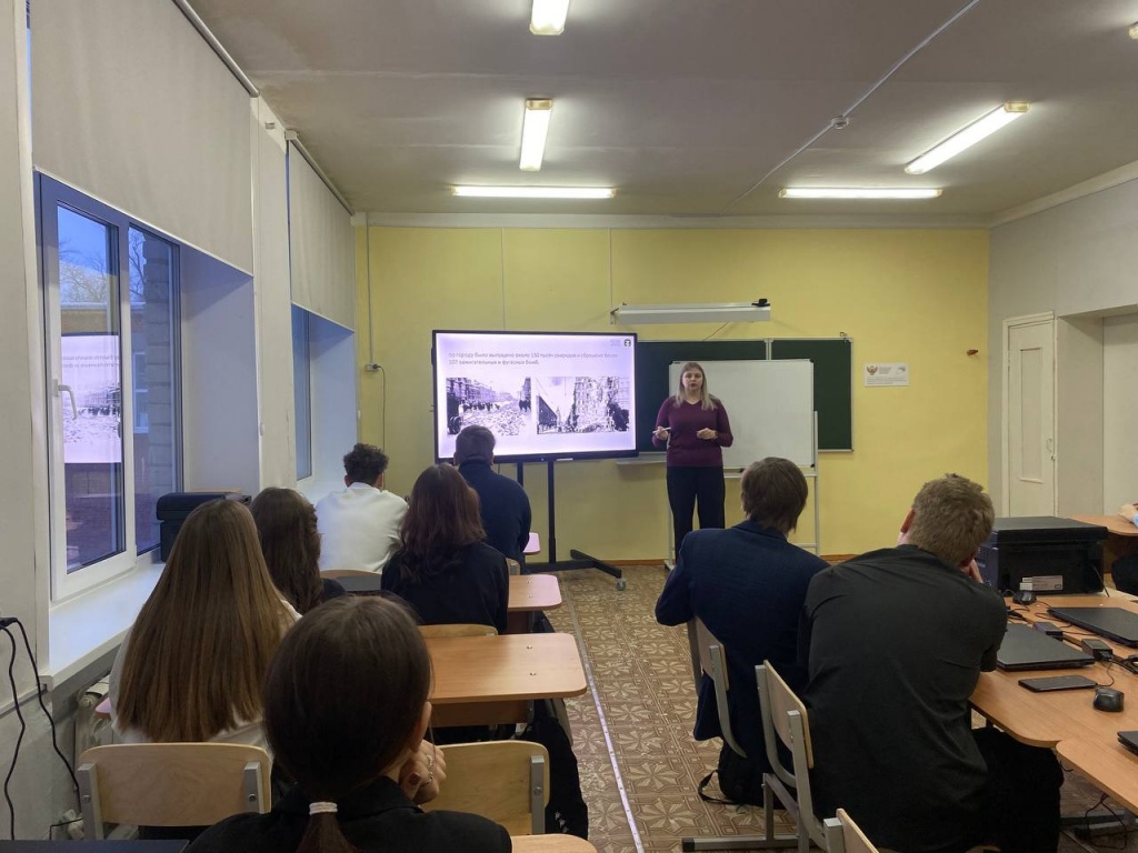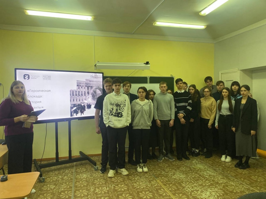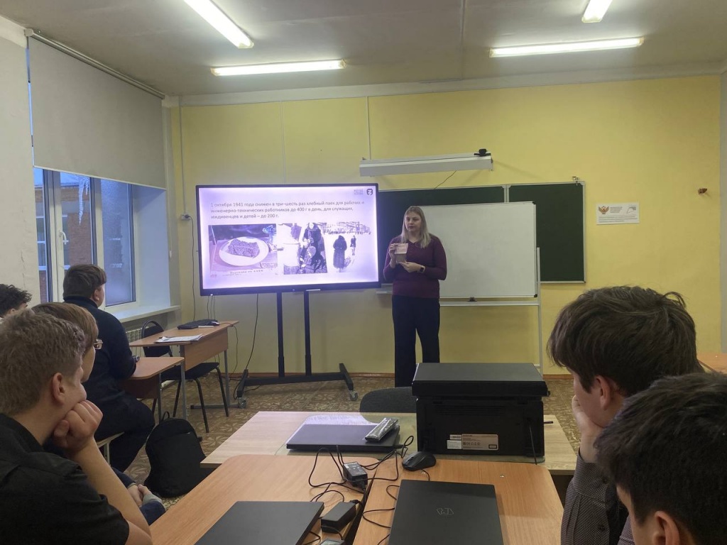 29 января Ирина Александровна Канунникова провела лекцию для учащихся 11 класса МОУ "СОШ им. Г.И. Марчука" на тему «Героическая блокада: история и факты» в рамках федерального просветительского проекта Знание. Лекторий, проводимого Российским обществом «Знание».