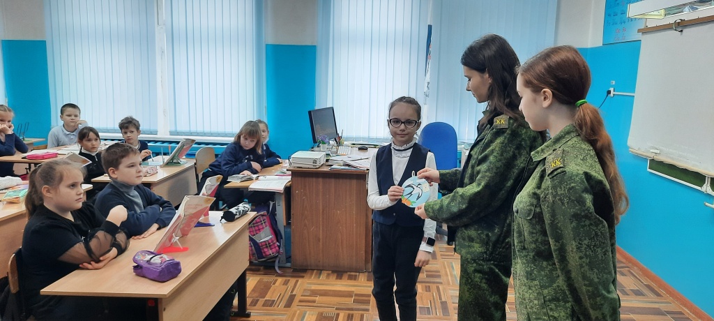 Кадеты провели с учениками младших классов беседу о Ленинградской Ласточке – символе силы духа, стойкости защитников города, надежды и веры в победу. Этот символ участники акции вручили каждому классу, изготовив его своими руками.
