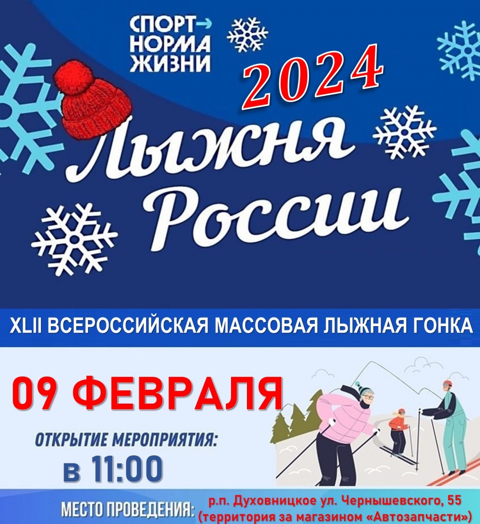 Приглашаем всех желающих принять участие в соревнованиях по лыжным гонкам в рамках XLII открытой Всероссийской массовой лыжной гонки «Лыжня России - 2024».