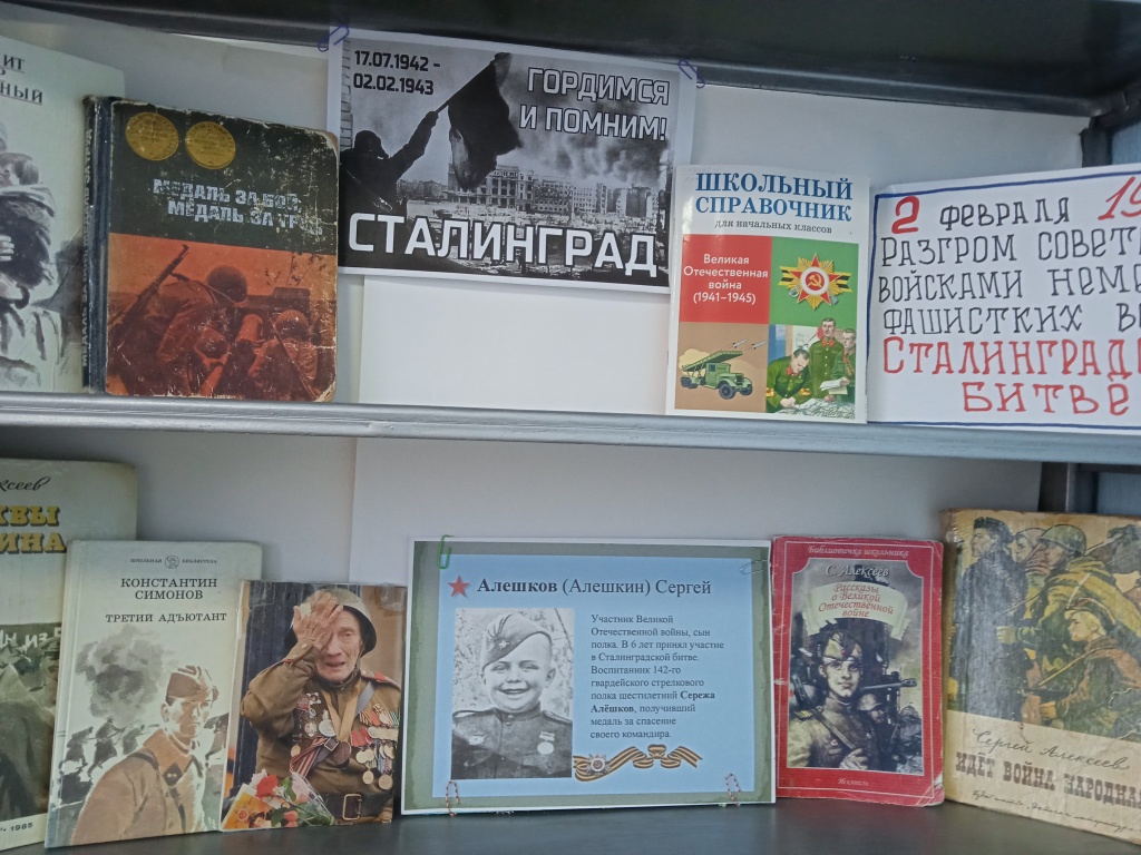 В Дмитриевской библиотеке - филиале оформлены выставки: «Сталинград- это доблесть и слава» и «Гордимся и помним! Сталинград», где представлены художественная и документальная литература, краеведческий материал о великой битве на Волге, о мужестве, героизме и стойкости славных защитников нашей Родины.