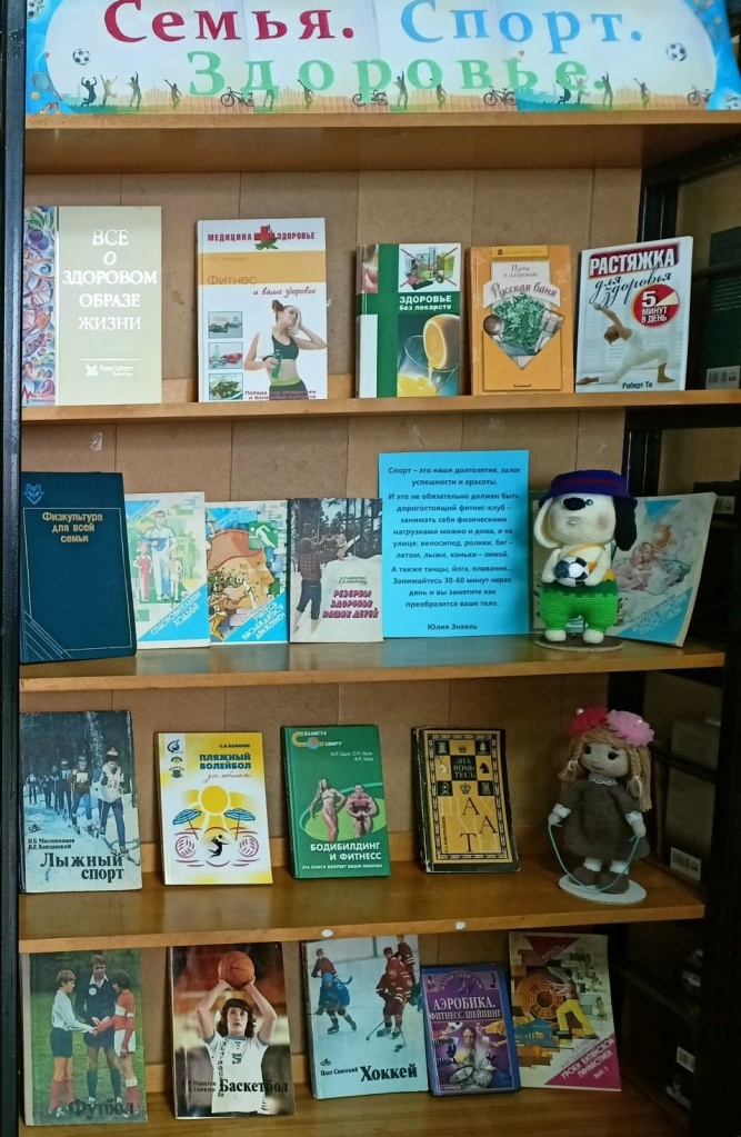 На абонементе Центральной библиотеки оформлена выставка - панорама «Семья.Спорт.Здоровье». На выставке представлен книги о здоровом образе жизни.