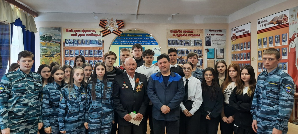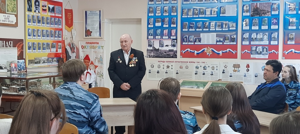 Кавалер ордена Красной Звезды Сергеев А.А. и Ильмуратов А.И. провели со школьниками трогательную беседу: поделились воспоминаниями о фронтовой жизни, о боевых операциях, в которых участвовали, о мужестве и отваге наших воинов, а также дали напутствие и советы будущим защитникам Родины.