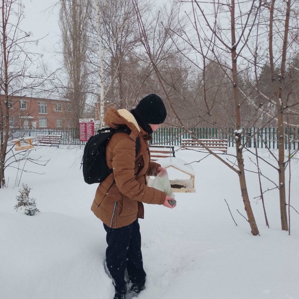 Зима – трудное время для птиц, особенно если она суровая и многоснежная. Чтобы как-то помочь птицам, ребята волонтерского отряда "Тимуровцы" 8 "в"класса (руководитель: Стекленёва С. Ю.) приняли участие в акции «Покорми зимующих птиц!».