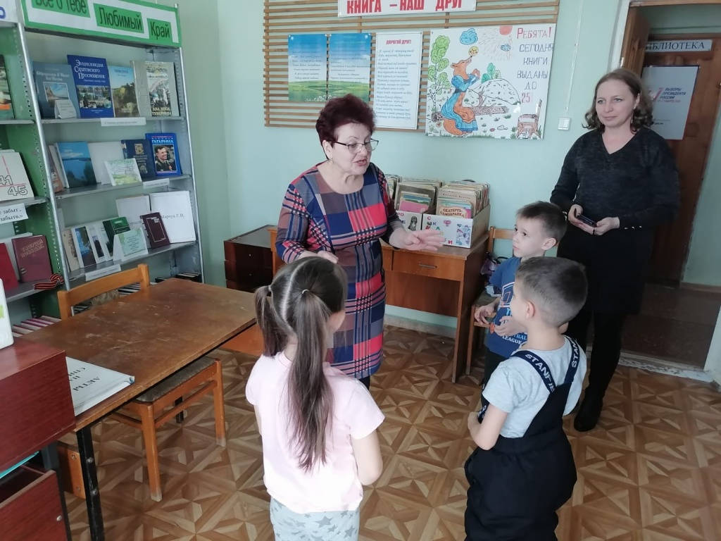 Для детей детского сада "Солнышко", библиотекарь Новозахаркинского сельского филиала провела экскурсию по библиотеке "Дом, где живут книги".