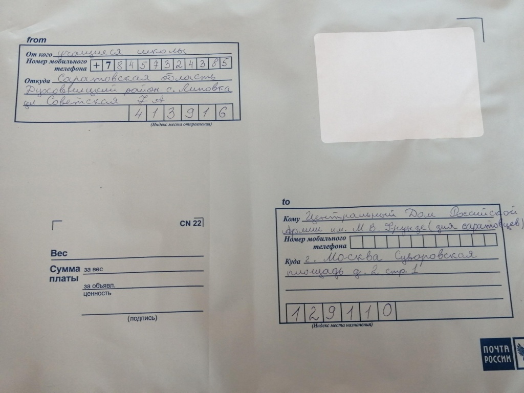 Учащиеся филиала МОУ «СОШ им. Г.И. Марчука р.п.Духовницкое» в с.Липовка с большим удовольствием рисовали поздравительные открытки и написали самые искренние и теплые пожелания, вкладывая частичку своей души в каждую строчку. Ребята выразили свое уважение и поддержку нашим героям!