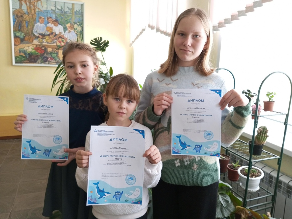 Ребята кружка "Практическая биология" (руководитель:Стекленёва С. Ю.) ЦО "Точка роста" МОУ "СОШ им. Г. И. Марчука р. п. Духовницкое" приняли участие в конкурсе "В мире морских животных".