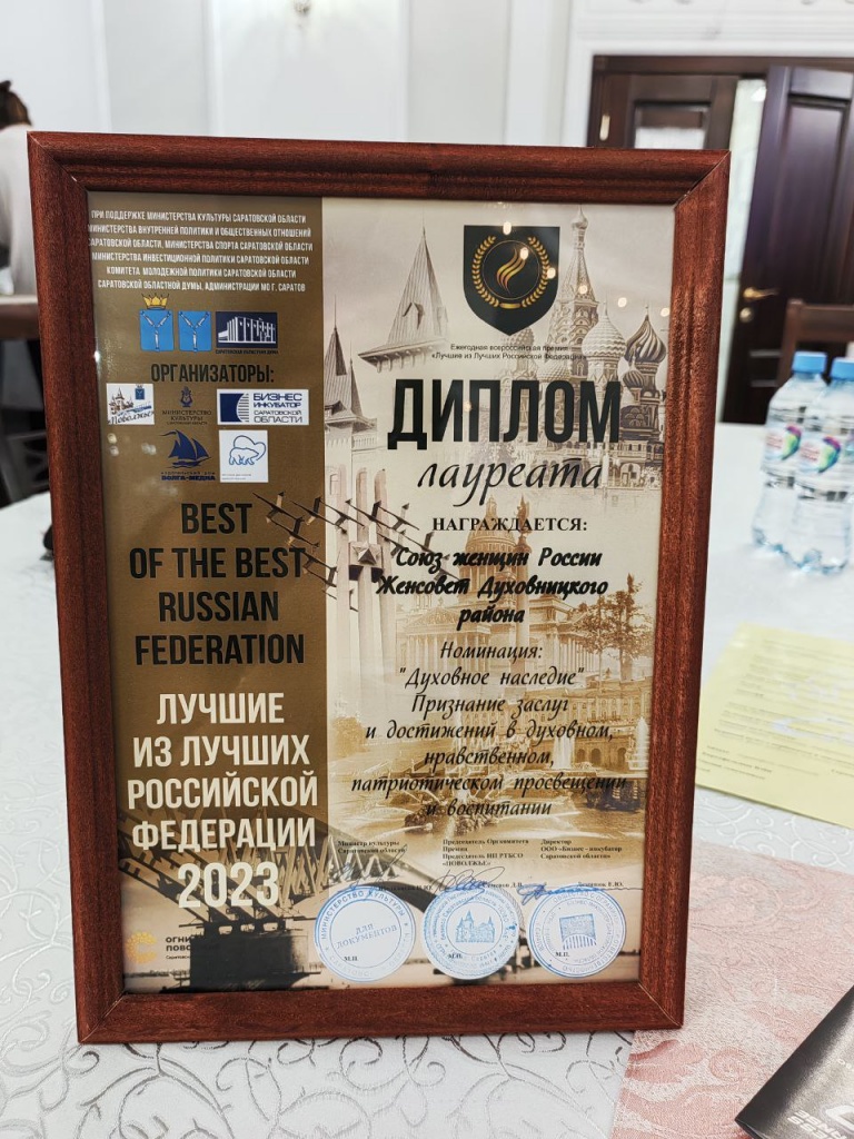 По итогам оценки жюри Духовницкий Союз Женщин России стал победителем премии «Лучшие из лучших Российской Федерации - 2023» в номинации «Духовное наследие» !!!!!
