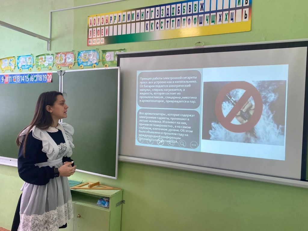 Детям рассказали и показали в презентации о профилактике употребления никотиносодержащей и безникотиновой продукции несовершеннолетними.
