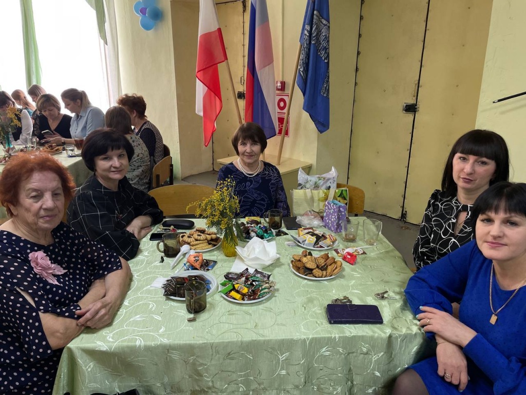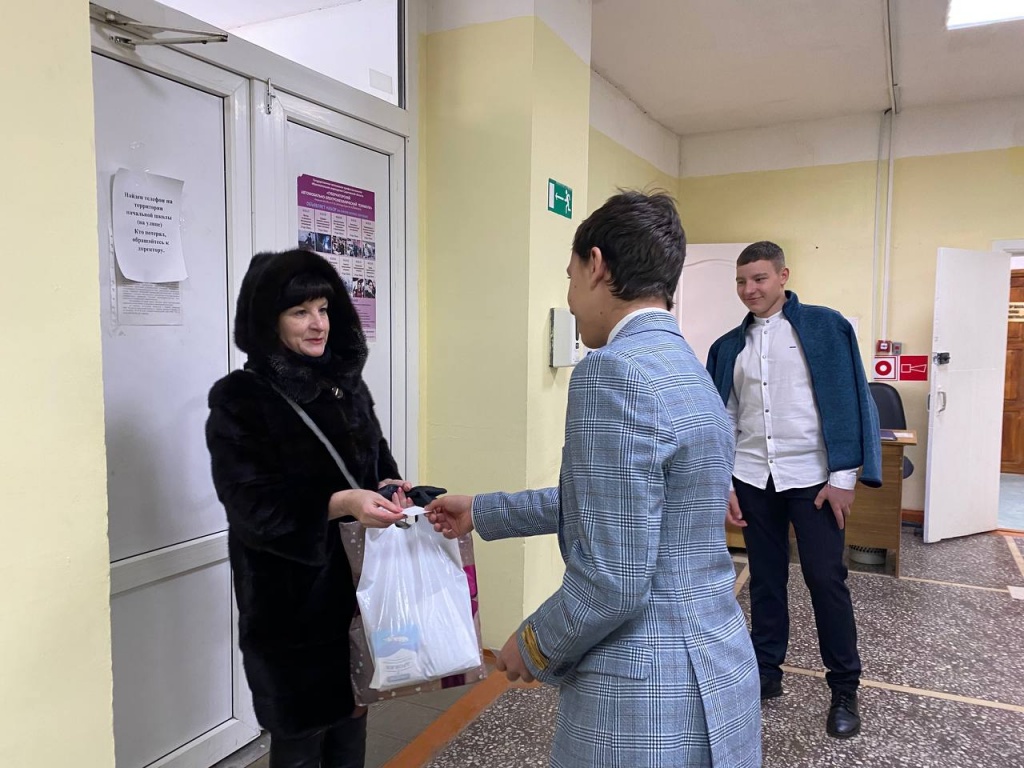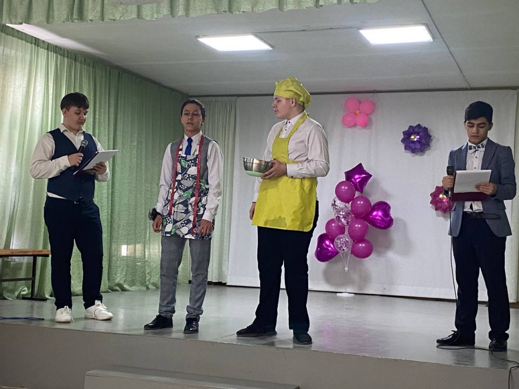 Дети радовали сюрпризами женщин. Утром у входа женщин встречали юноши 9-х классов и дарили им открытки и поздравления. Для работников столовой 11 класс станцевал вальс и подарили сладкие подарки. 9-е классы в актовом зале накрыли сладкие столики, женщины общались за чашечкой чая.