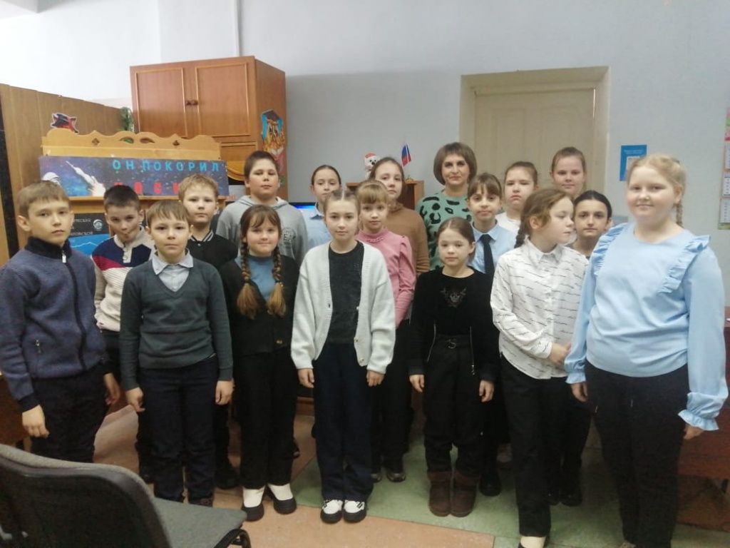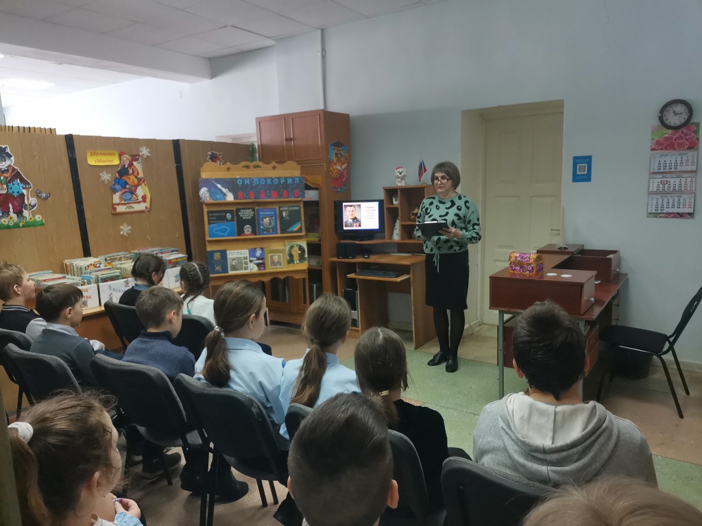 С помощью показа слайдов презентации библиотекарь познакомила детей с жизнью и достижениями Юрия Гагарина, какие испытания ему пришлось пройти, чтобы стать первым космонавтом планеты. Показала видеоролик о знаменитом полете, который длился 108 минут и принес Гагарину всемирную славу. В ходе мероприятия прочитала отрывок из книги Ю. Нагибина «Рассказы о Гагарине».