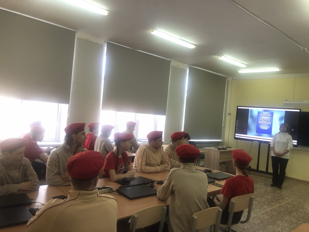 Накануне весенних каникул заведующая музеем МОУ"СОШ им.Г.И.Марчука р.п.Духовницкое" Котова И.Г. провела в 8Б классе (отряд юнармии кл.рук.Немцева Г.А.) классный час "Помним, чтим, гордимся!", посвящённый памяти нашего земляка, академика Г.И.Марчука.