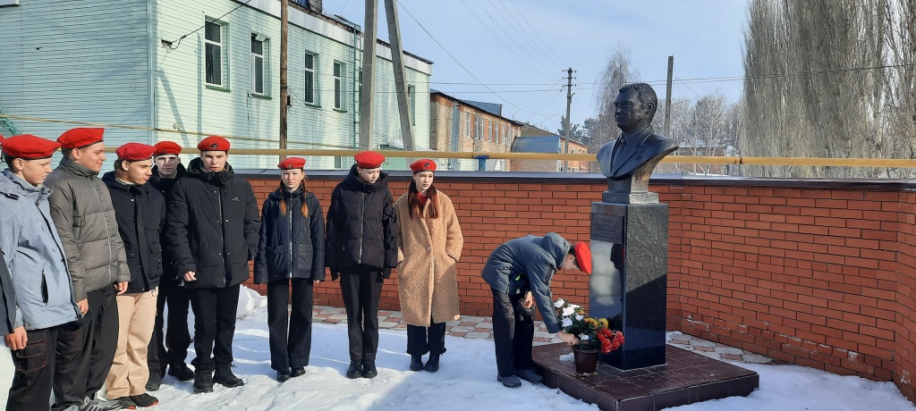 По окончании классного часа ученики возложили цветы к бюсту Гурия Ивановича в Сквере Трудовой Славы.