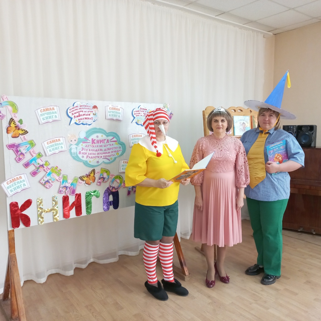 Какой же праздник без виновницы торжества - самой Королевы Книги. В гости к ребятам приходила Королева Книга со своими друзьями – сказочными героями Незнайкой и Буратино.