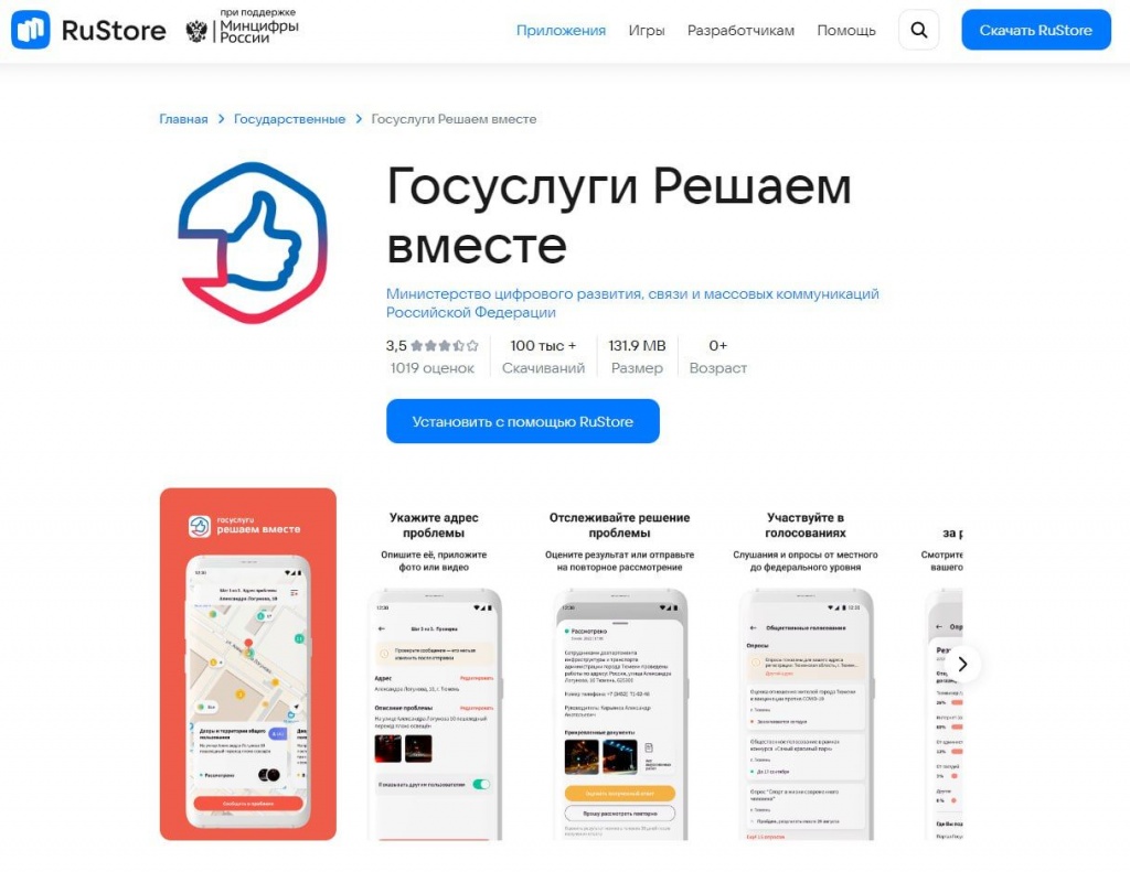 Скачивайте приложение «Госуслуги. Решаем вместе» с помощью RuStore: apps.rustore.ru/app/ru.gosuslugi.pos